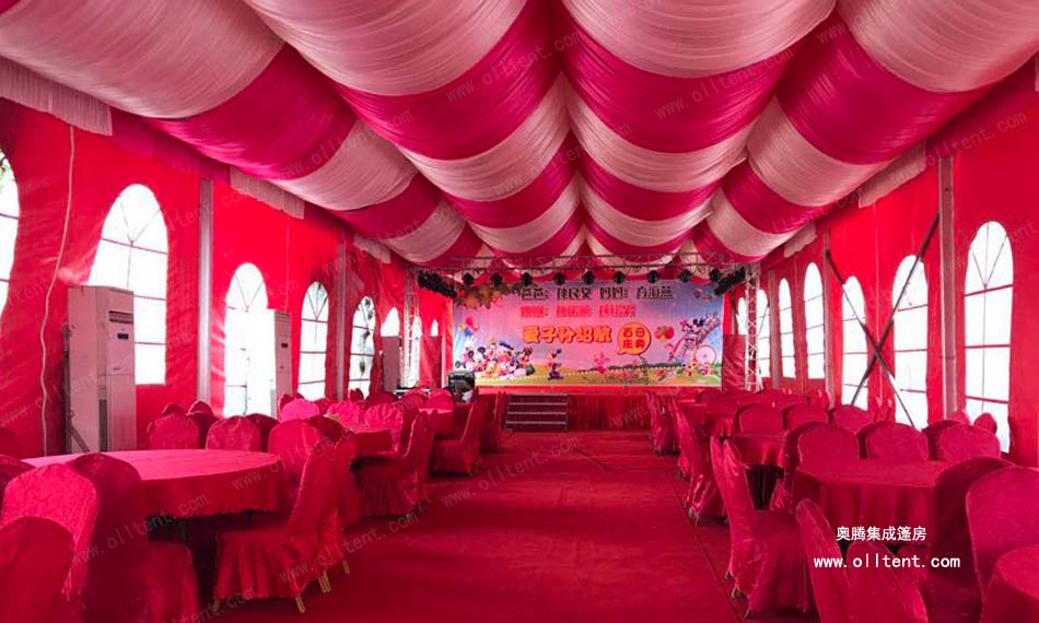 傳統(tǒng)婚禮一般都選擇在酒店舉辦,室內裝修都是酒店自帶,場地布置及裝飾也有一定的局限性。而戶外婚慶篷房相比之下就有了更多的選擇性。無論是規(guī)格尺寸、風格還是配套設施都不亞于酒店婚禮。