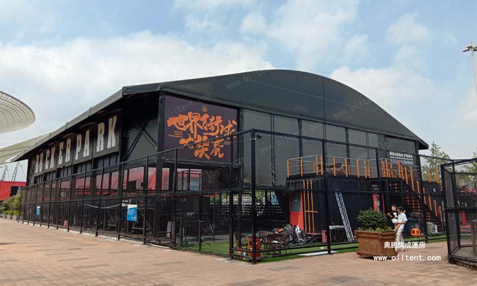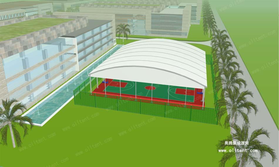 隨著人口的增加和人們生活水平的提高,各種大廈如雨后春筍般拔地而起,人們戶外活動的空間不斷被壓縮,各種戶外體育館更是由于維護成本以及運營成本高昂而不得不提高收費標準,導致流失不少中低端客戶。此外,傳統(tǒng)體育館更有施工周期長,維護成本高,用途單一的特點而不受商家歡迎。奧騰集成篷房針對這些傳統(tǒng)體育場館的劣勢,提出了一種全新的體育館篷房設計方案。這種體育館篷房既可反復拆卸使用,又可以作為籃球館、足球場、羽毛球場等,可謂是“一個篷房,多個場館”!