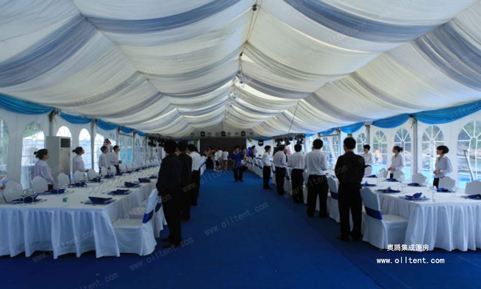 歐式帳篷可以找奧騰篷房公司,奧騰還能同時提供地毯和布幔(肯定也會負責運送搭建拆卸)。搭建的時候一定千萬要注意安全!所有支架一定要檢查有沒有固定牢。