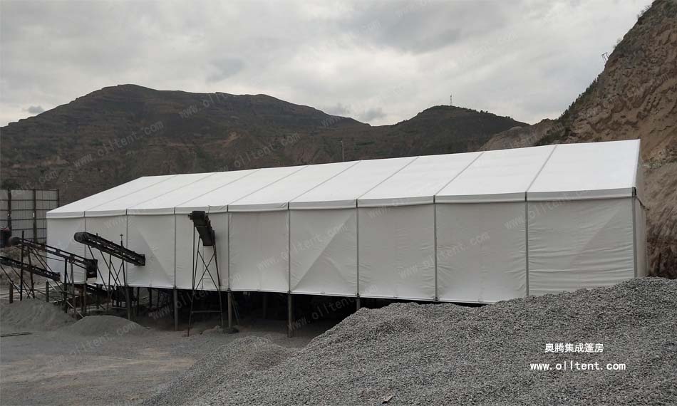 后來老板介紹道:“這是江蘇一家工廠研發(fā)出一種裝配式的廠房,跨度可達(dá)80米、長度無限延伸、高度10多米,能抗風(fēng)載雪,材料也是高度符合環(huán)保要求。 如果不蓋棚子,這個灰到處飄,二十米內(nèi)全都是灰,路上草上樹上地上,到處都是。長年累月積累下來的灰,相當(dāng)驚人的。這樣做就把大部分灰留在了廠區(qū),不至于飄灑的哪里都是。像我做這個石料行業(yè)的,開采地點會時常變更,堆積物料的卸貨點也會變更,這就要一個遮蔽物隨著工作地點的變化而變化。而我現(xiàn)在使用的這種裝配式篷房就能輕松實現(xiàn),裝配式篷房就可以隨意搭拆,如果框架加上輪轂就可以實現(xiàn)篷房哪里需要哪里“走”。而且咱們也要積極樹立綠色治理理念,轉(zhuǎn)變思維,創(chuàng)新發(fā)展,為進(jìn)一步提升全市的生態(tài)環(huán)境治理和空氣質(zhì)量提升做出更大貢獻(xiàn)。”看來這位老板不僅會做生意,也非常有“覺悟”的!