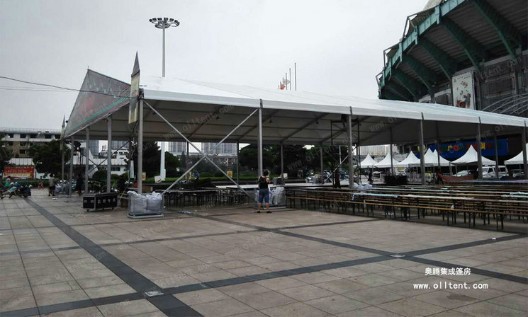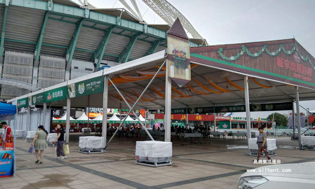 大型篷房還有多種可供選購的配置,使篷房的用途和功能更加強(qiáng)大。例如:ABS墻體、三明治墻體、彩鋼瓦墻體、玻璃幕墻、透明頂、頂幔布幔內(nèi)飾、排風(fēng)扇、卷簾門、玻璃門、承重盤承重框、地板系統(tǒng)、排水槽等