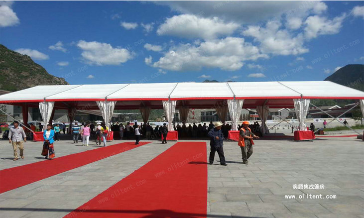 大型篷房還有多種可供選購的配置,使篷房的用途和功能更加強大。例如:ABS墻體、三明治墻體、彩鋼瓦墻體、玻璃幕墻、透明頂、頂幔布幔內(nèi)飾、排風(fēng)扇、卷簾門、玻璃門、承重盤承重框、地板系統(tǒng)、排水槽等